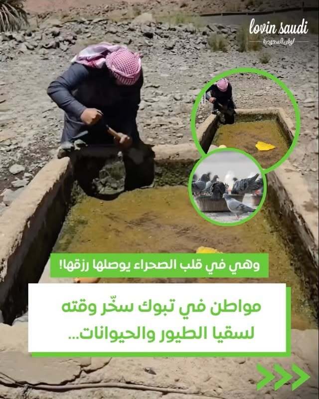 سعد العطوي يواصل عادة ورثها من والده، يصنع أحواض ويسقي فيها الطيور كل يوم ☀️🕊️ الهدف بسيط لكن عظيم الأجر والخير 🙏❤️